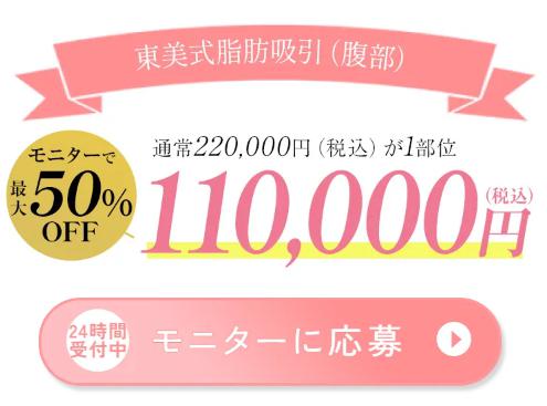 いつまでモニター募集が続くかはわからないので、50%OFFでベイザー脂肪吸引ができる今タイミングバッチリです!