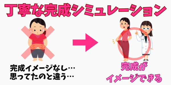 完成の状態について、シミュレーションができて完成形がイメージできた状態で施術できるところを選ぶ。