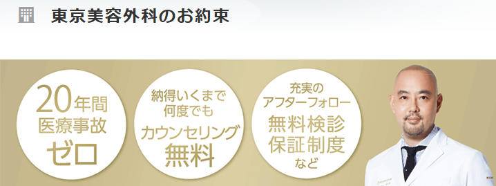 開業以来、20年以上医療事故ゼロの実績がある東京美容外科の信用度は高い